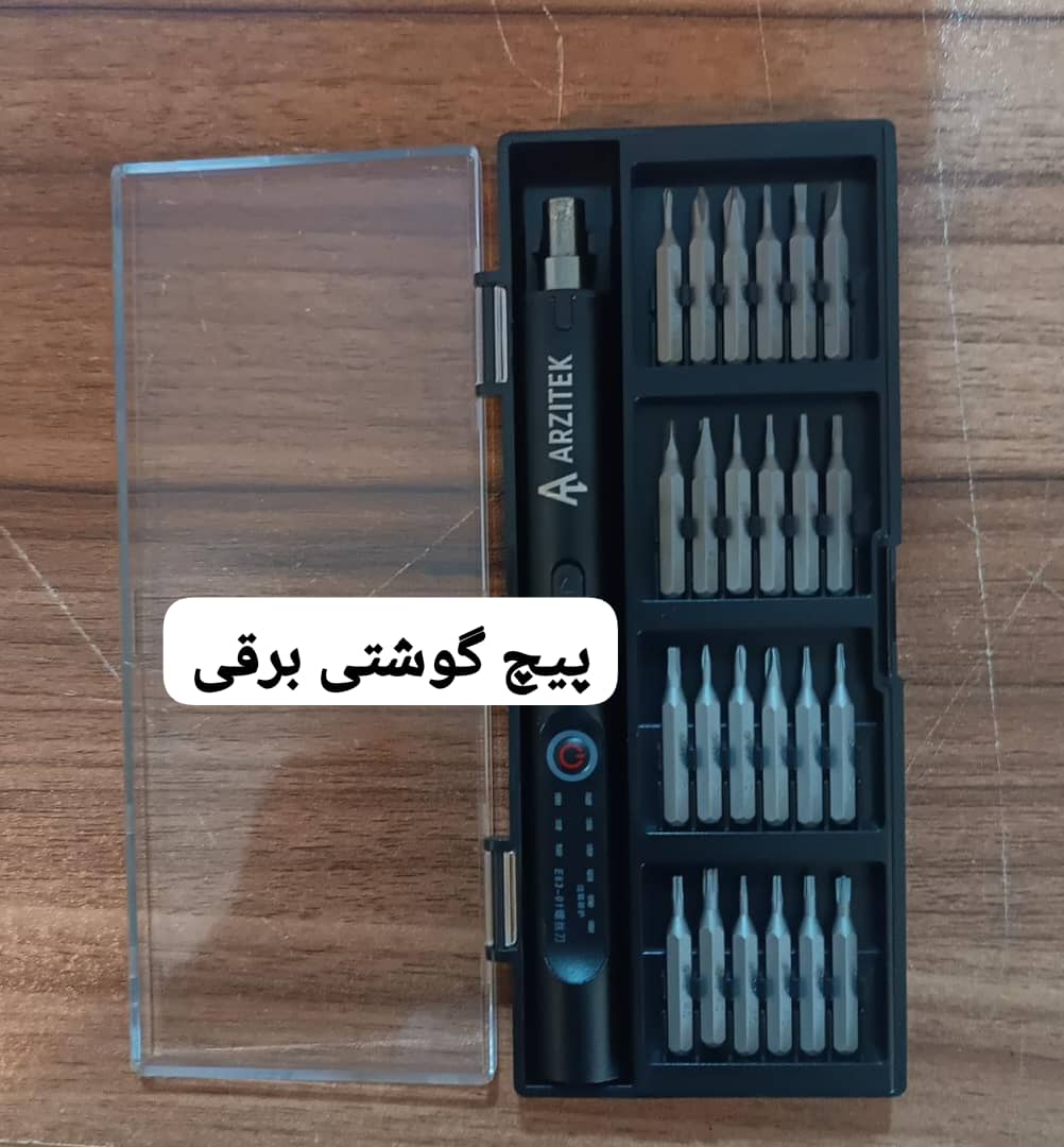 پيچ گوشتی شارژی ARZITEK پیچ گوشتی ARZITEKمیباشد. این دستگاه قابلیت شارژ با کابل USB داخل بسته دستگاه را دارد و همچنین داخل بسته بندی دستگاه 20 عدد نوک پیچ گوشتی برای تنوع کاری مختلف وجود دارد. این پیچ گوشتی دارای باتری لیتیوم و سه عدد LED برای ایجاد روشنایی روی کار است. این دستگاه به دلیل ابعاد ظریف و قلمی یکی از گزینه های مناسب برای تعمیرکارهای موبایل و گجت های کوچک الکترونیکی محسوب میشود.